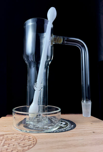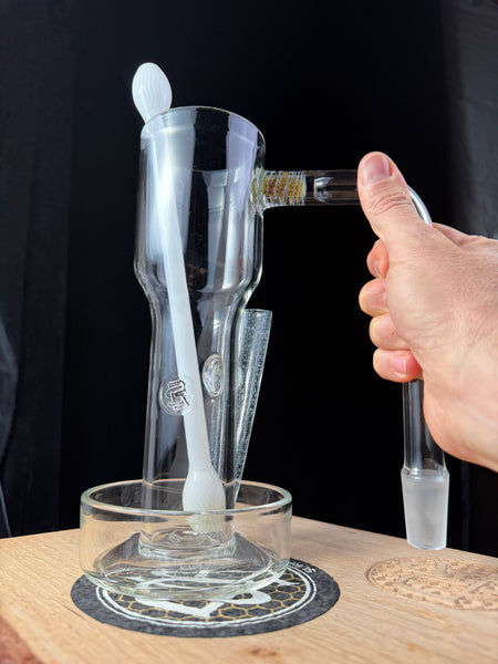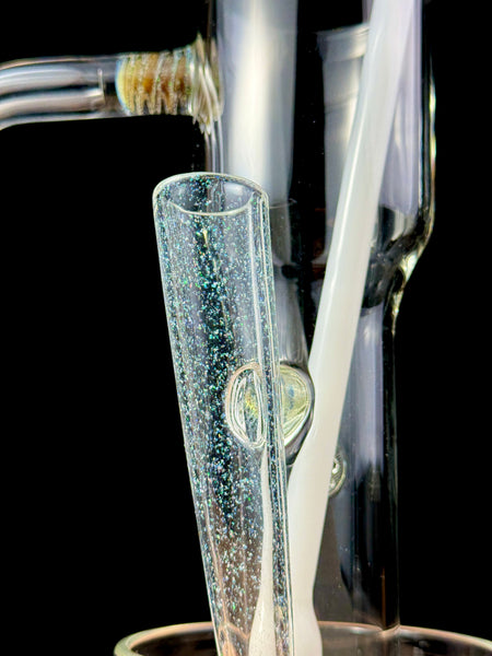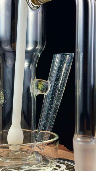 This super tight V2 slurp n slide mug has some of my favorite proportions. Featuring the extra wide 110 mm dish at the base. Sparkling crushed opal accents and a cropal spiral where they handle meets the mug. Holds 16 fluid ounces. Comes with q-tip straw, mood mat, certificate of authenticity, and stickers
